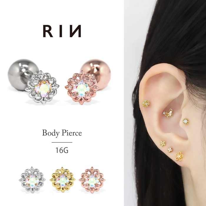 ボディピアス 軟骨ピアス トラガス 16G 小さい キラキラ ジュエル 小さめ アンティーク風 片耳用 軟骨1530 d-079