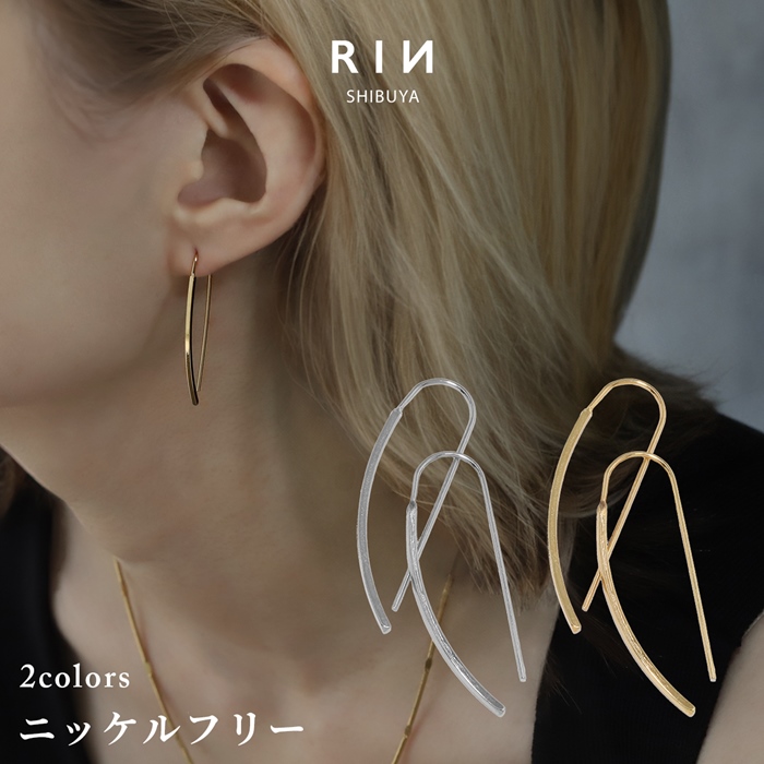 ピアス ロング フック 18金 18Kコーティング レディース カーブ 曲線 『両耳用・2個セット』