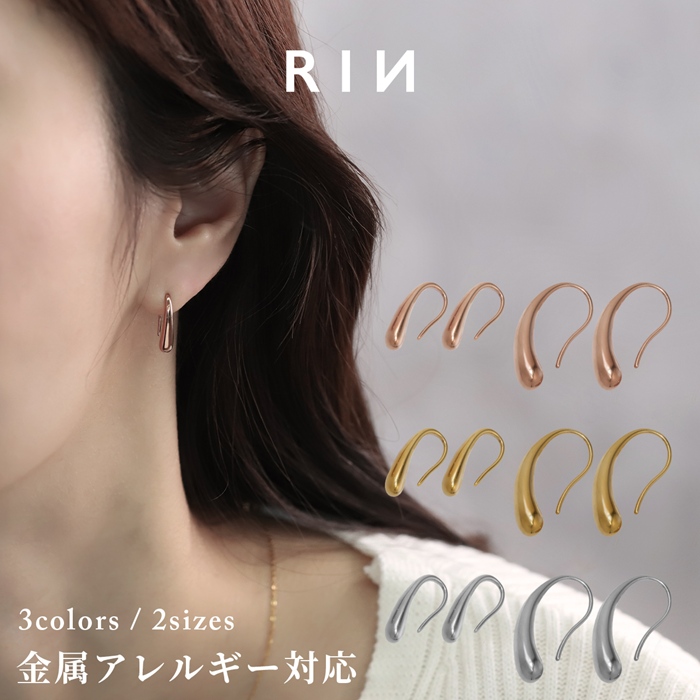 ピアス アレルギー対応 つけっぱなし ステンレス ドロップ フック レディース 『両耳用・2個セット』
