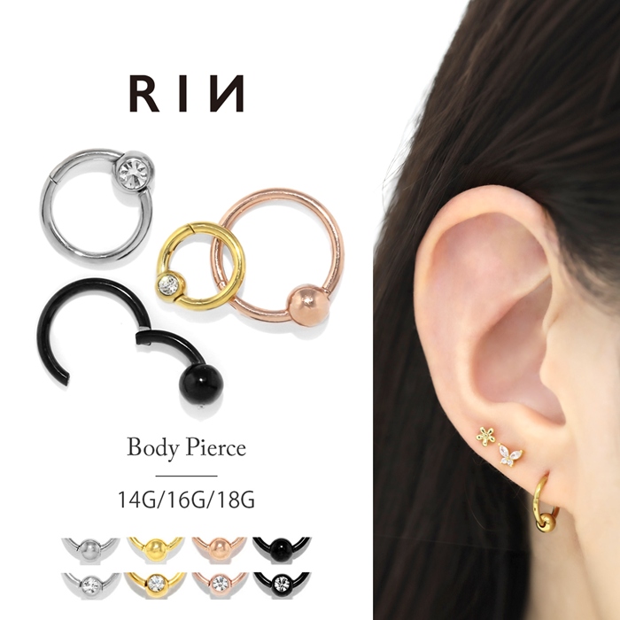 ボディピアス 軟骨 16G 14G 18G ビーズリング 片耳用 ワンタッチ リング フープ 金属アレルギー対応 トラガス