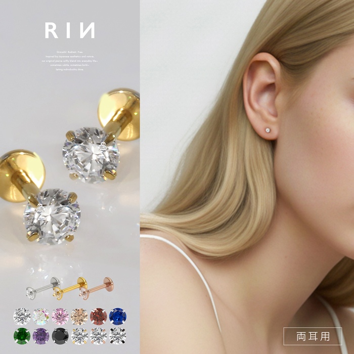 ピアス 金属アレルギー対応 レディース 立爪 ジュエル ステンレス 可愛い 一粒 小さい サイズ ラブレット 『両耳用・2個セット』