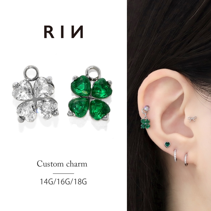 チャーム 14G 16G 18G クローバー 揺れる かわいい ボディピアス 軟骨ピアス パーツ カスタム ピアスパーツ 片耳用