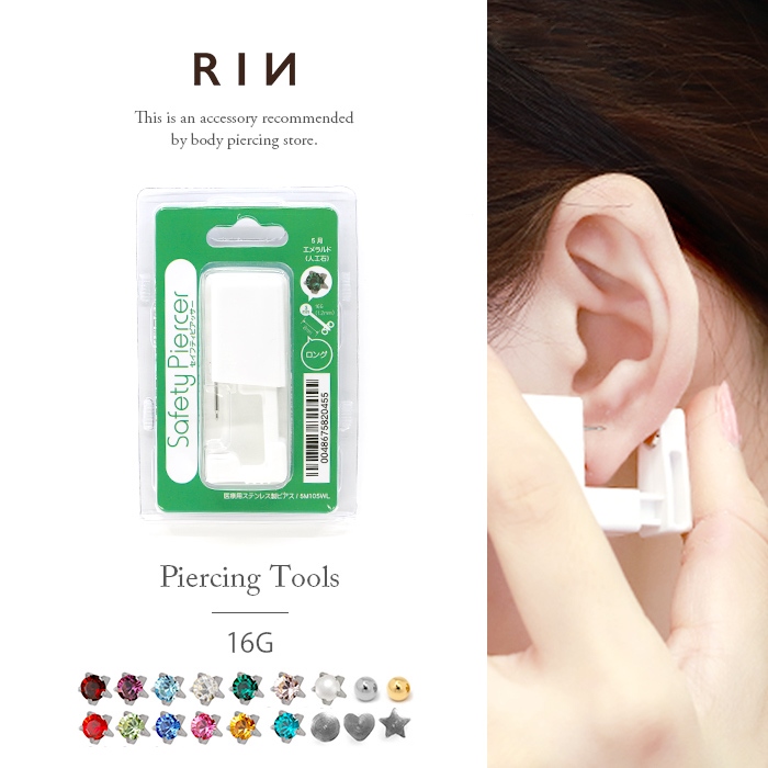 ピアッサー 16G 誕生石 耳たぶ アレルギー対応 医療用 ステンレス製 ボディピアス ピアッシング 片耳用