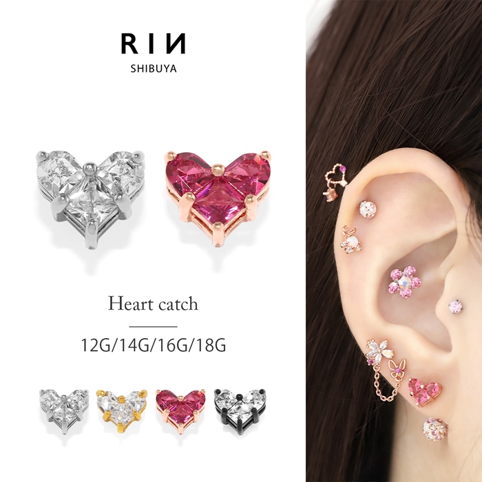 キャッチ ボディピアス カスタム 軟骨 18G 16G 14G 12G ハート ジュエル 片耳用 可愛い パーツ レディース