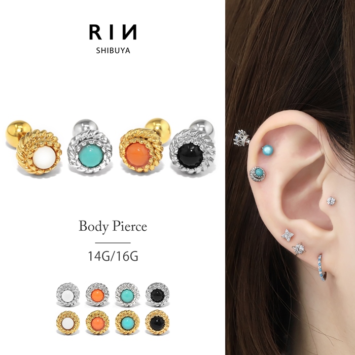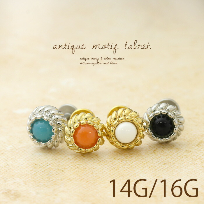 軟骨ピアス 14G 16G ボディピアス 軟骨 ピアス アンティーク ストーン 片耳用 金属アレルギー セカンドピアス