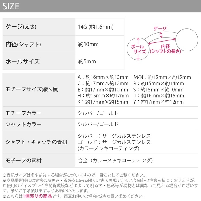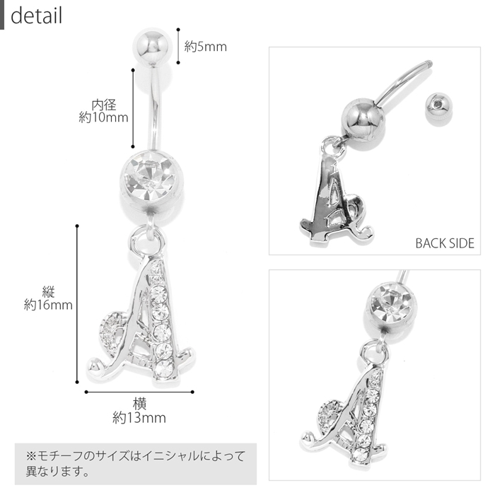 【商品名】[14G]へそピアス0297/イニシャル