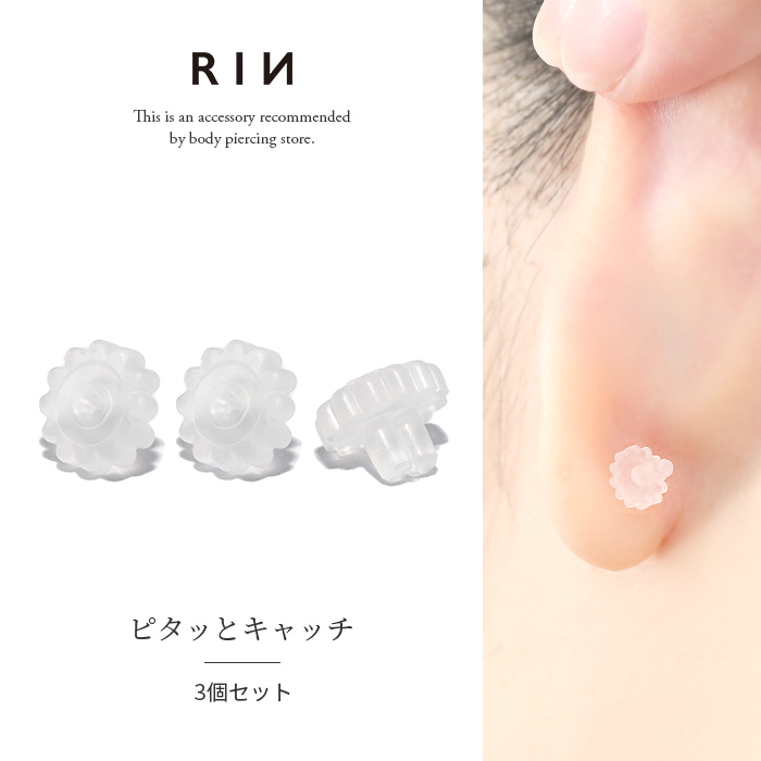 3個セット キャッチ 外れにくい 花形 シリコン 14G 16G 18G 20G シリコン樹脂 キャッチ0235 set-ori-c-3