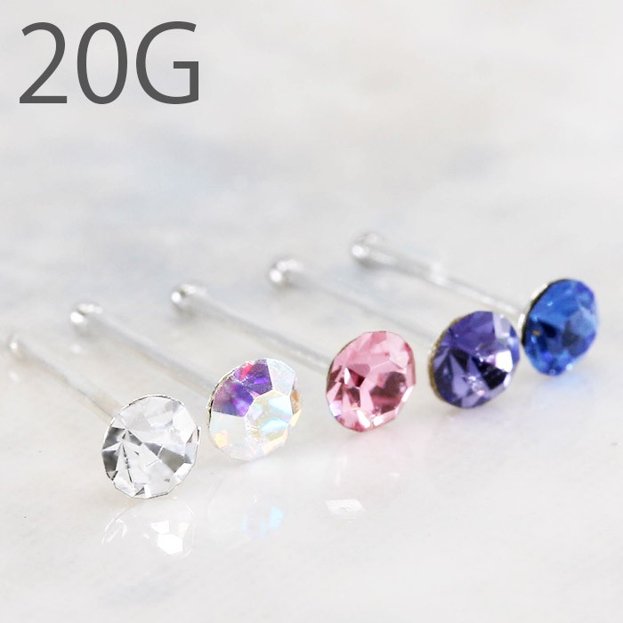 鼻ピアス ノストリル ボディピアス 20G ジュエル キラキラ クリア オーロラ ライトピンク ブルー パープル 軟骨