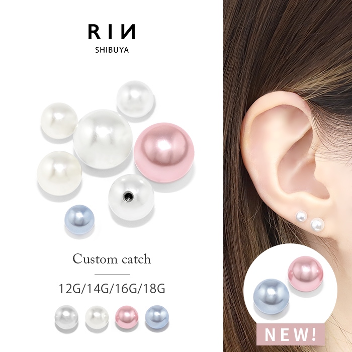 キャッチ ボディピアス パール カスタム 12G 14G 16G 18G 軟骨 可愛い パーツ 片耳用 サイズ レディース