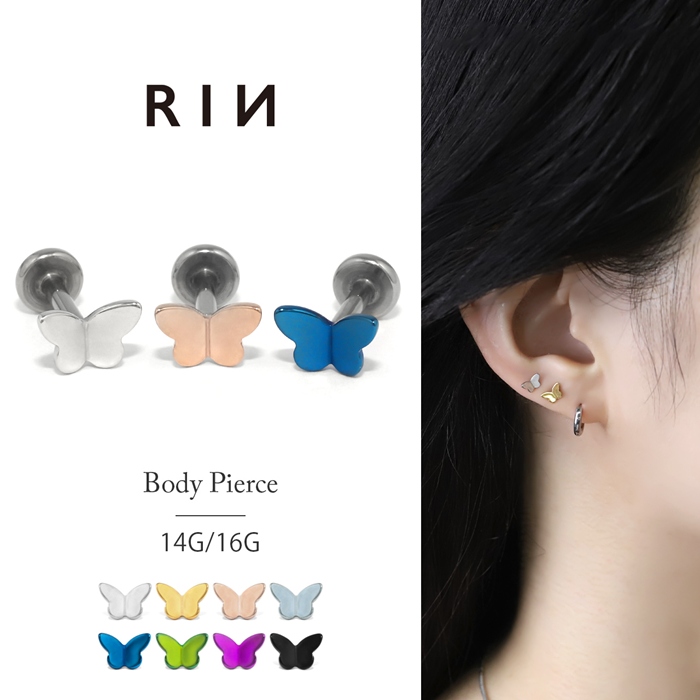 軟骨ピアス 16G 14G ボディピアス 蝶々 インターナル 金属アレルギー対応 トラガス サージカルステンレス 片耳用