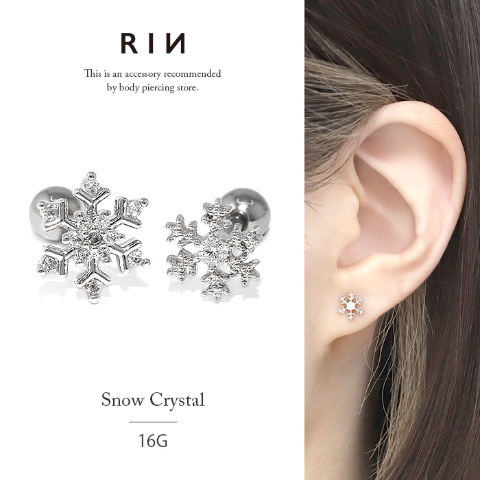 軟骨ピアス 16G ボディピアス 雪 結晶 ジュエル ストレートバーベル ステンレス 金属アレルギー対応 レディース