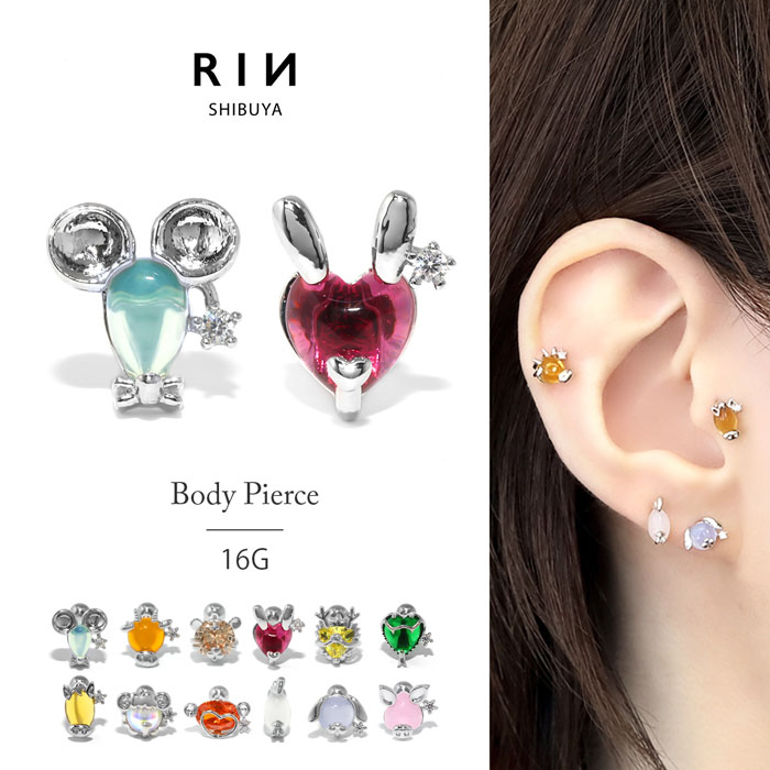 ボディピアス 軟骨 ピアス 縁起 ジュエル オレンジ 黄 イエロー ピンク 緑 グリーン 鳥 犬 ねずみ 牛 羊 兎 虎 猿 蛇 年 ストレートバーベル 正月 軟骨1410 t9192-105