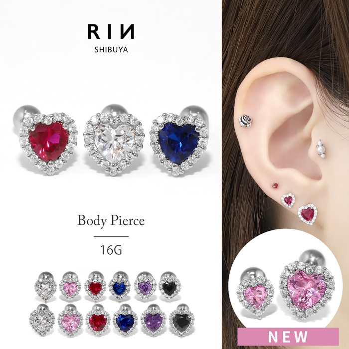 ボディピアス ハート キュービックジルコニア ストレートバーべル ジュエル 耳たぶ 可愛い おしゃれ 青 キラキラ アウターコンク イヤーロブ ヘリックス アクセサリー colsv 軟骨1318 t9312-28