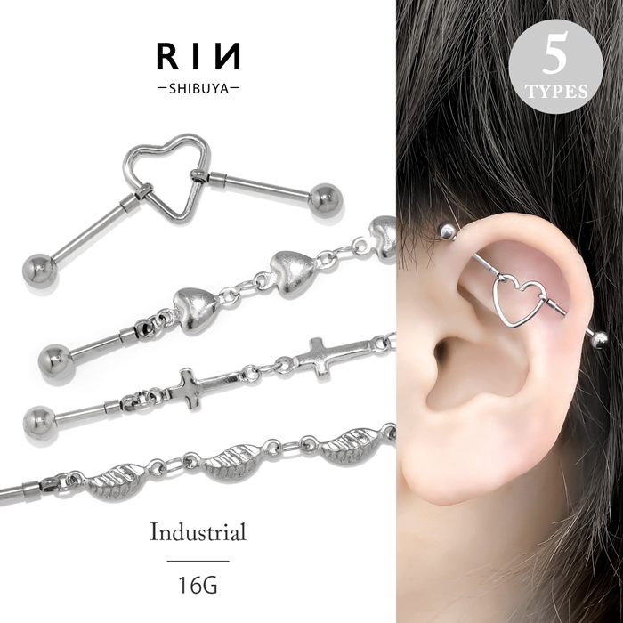 インダストリアル ボディピアス 16G 軟骨 ハート サークル リーフ クロス サージカルステンレス 金属アレルギー対応