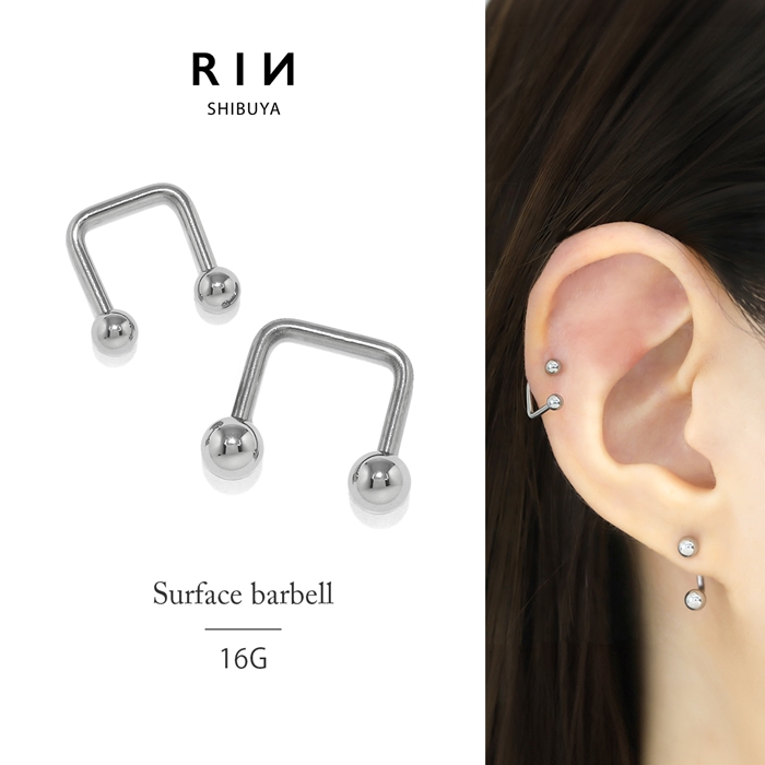 ボディピアス サーフェイスバーベル トラガス 軟骨 16G ステンレス 片耳用 セカンドピアス 金属アレルギー対応