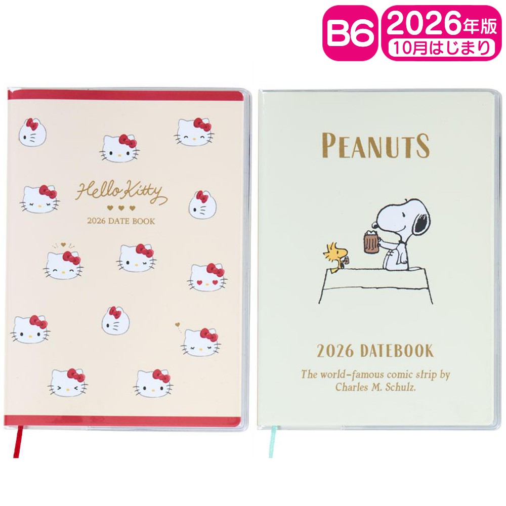 ハローキティ スヌーピー B6デイトブック 2026 10月始まり ダイアリー シール付 カレンダー スケジュール 手帳 予定帳 ノート メモ 月間