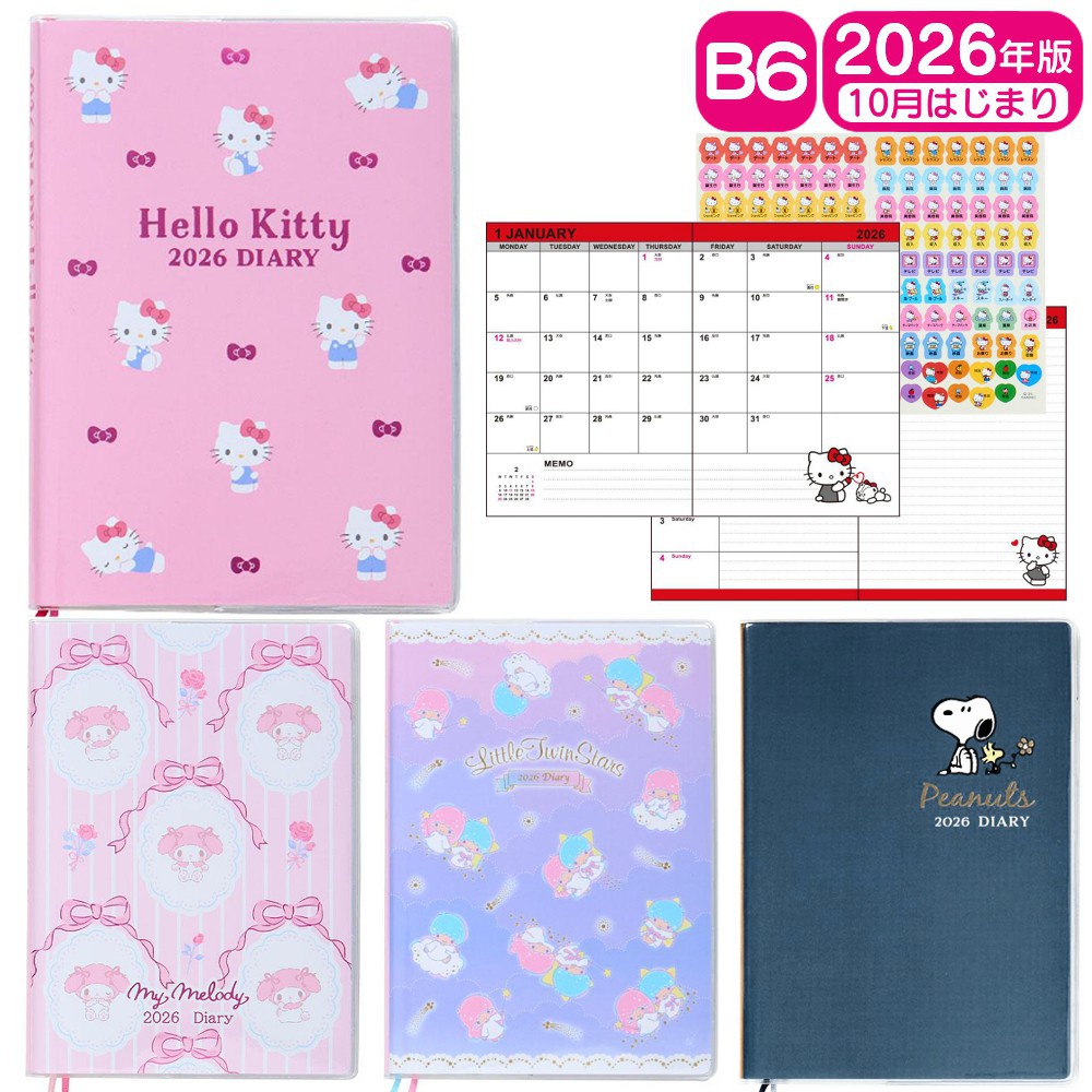 サンリオ スヌーピー B6ダイアリー 横罫 2026 10月始まり ダイアリー シール付 カレンダー スケジュール 手帳 予定帳 ノート 週間 月間