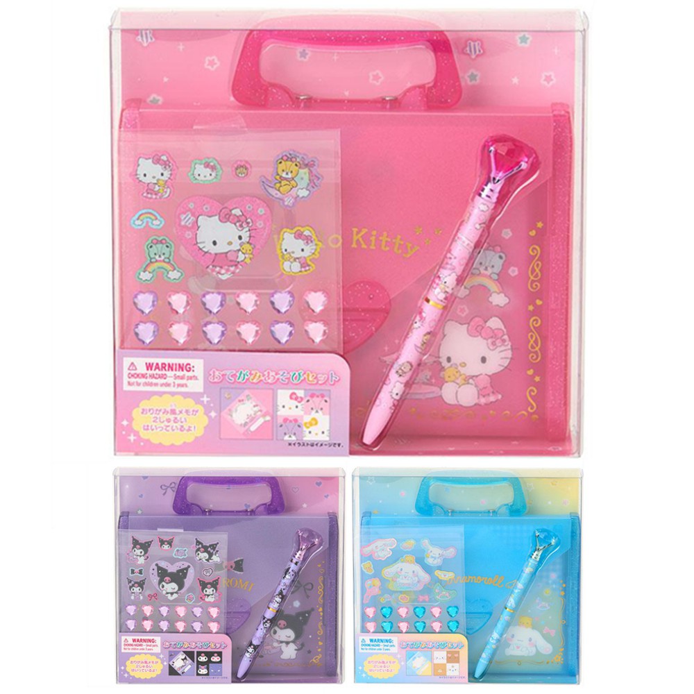 サンリオ お手紙あそびセット レターセット シール付き 手紙 折り紙風メモ ステッキ風ペン 持ち手付きケース 子供 ギフト キャラクター かわいい