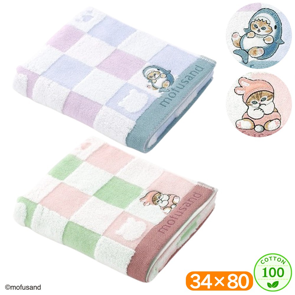 モフサンド おすわりにゃん フェイスタオル 34×80 綿100 タオル スポーツタオル ロングタオル 厚手 吸水 やわらか キャラクター かわいい