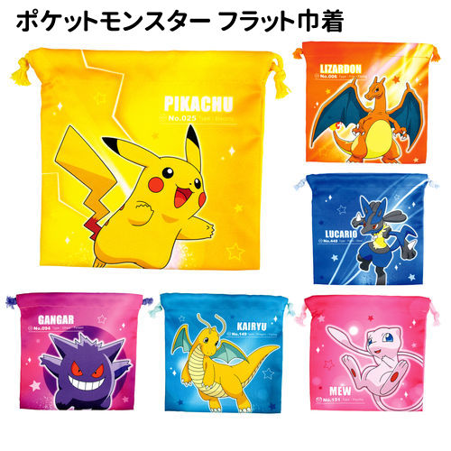 ポケットモンスター フラット巾着 PM-553020 /スターライト/ピカチュウ リザードン ルカリオ ゲンガー カイリュー ミュウ/