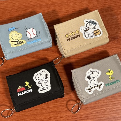 送料無料 ピーナッツ/スヌーピー コンパクト三つ折り財布 SPZ-3891-4 /ブラック/スヌーピー グレー/ジョー・クール ベージュ/オラフ ブルー/ウッドストック