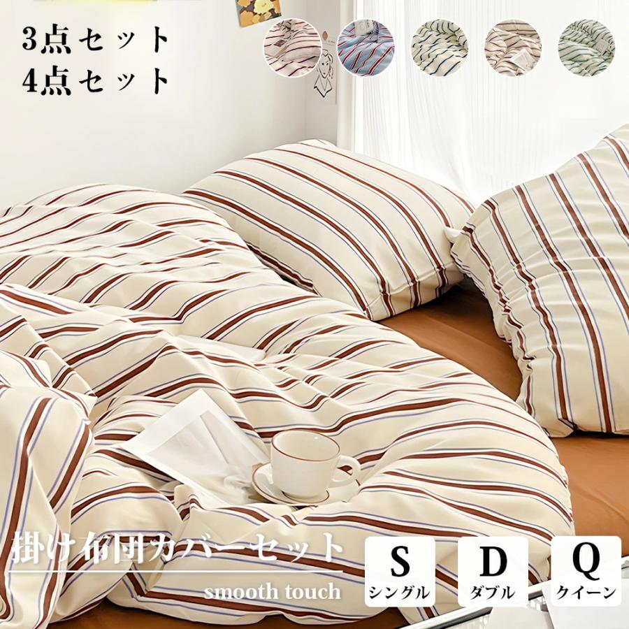 布団カバー 3点セット 4点セット ストライプ 寝具 ふとんカバー 可愛い 優しい肌触り 掛け布団カバー 安い 丸洗いOK 速乾 北欧 おしゃれ 一人暮らし インテリア