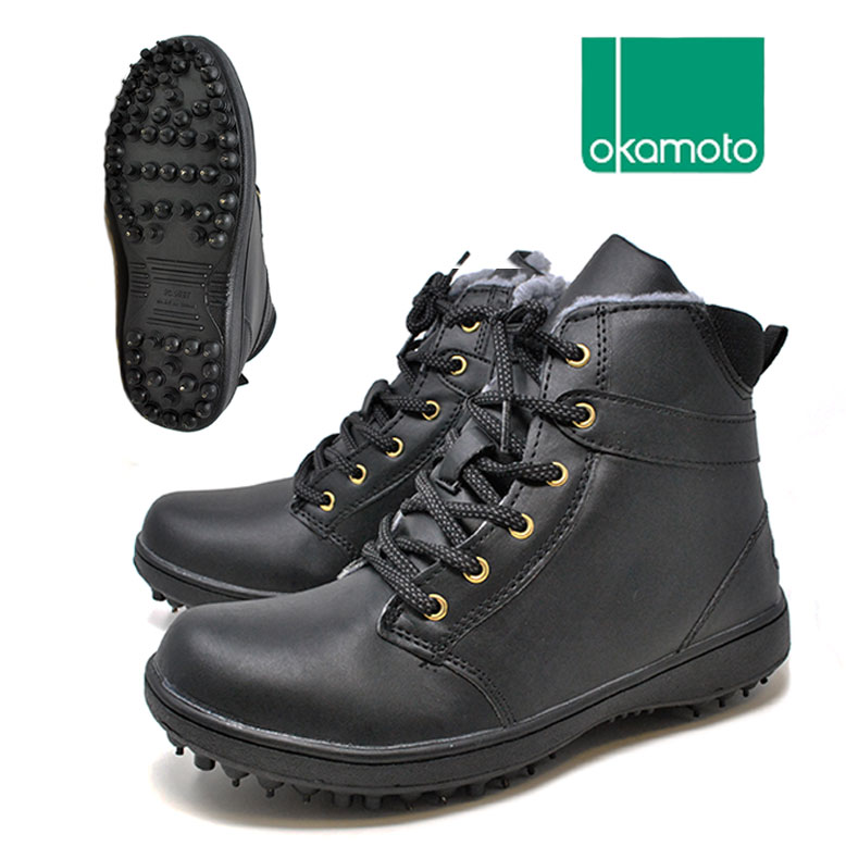 スパイクシューズ 作業靴 メンズ オカモト 8230 ブラック 防寒 ボア裏 ファスナー 反射材付き 磯釣り フィッシングシューズ アウトドア 林業 法面作業 山菜採り