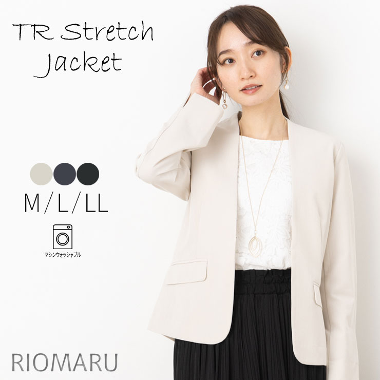 ジャケット レディース アウター フォーマル セレモニー春 夏 秋 (M〜LL)TR ストレッチ ノーカラー ウォッシャブル 長袖 ジャケット(jk)(rc)