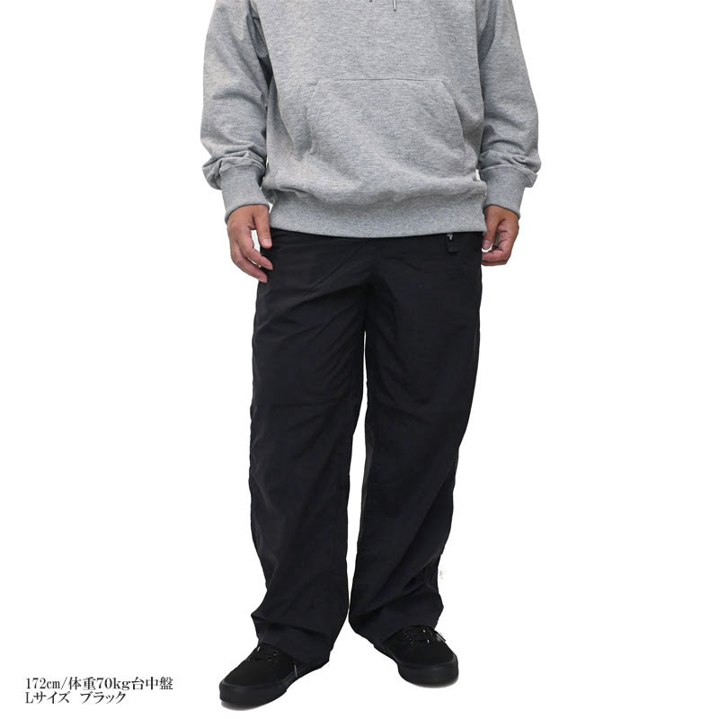 | ▼男性スタッフ(がっちり型) 身長172cm/体重70kg台 普段ボトムスは32〜33インチ、日本のサイズ規格のものでLサイズを穿いています。こちらのパンツはLサイズで、ややゆったりとしたサイズ感でした。ウエストはウェビングベルト仕様なので丁度良いサイズ感で穿けます。普段使いならゆったりめのLサイズで良いですが、トレッキングなどアウトドアのアクティブなシーンで使うならMサイズでも良さそうです |