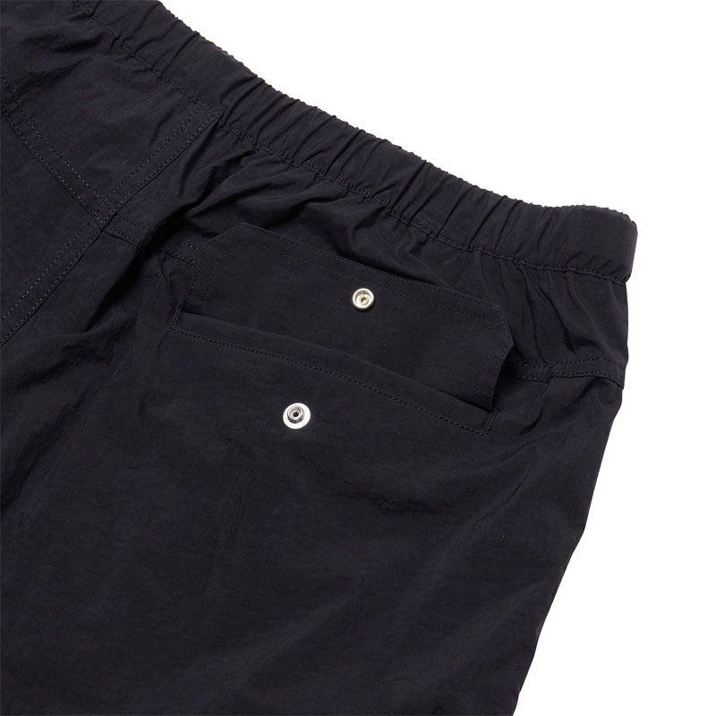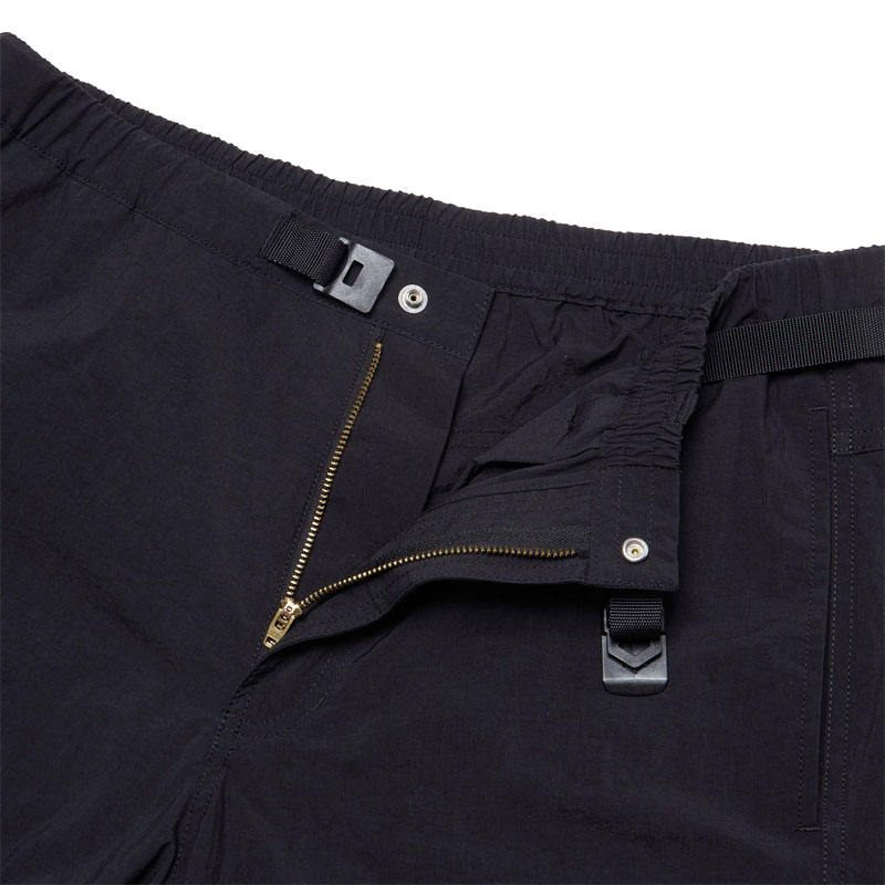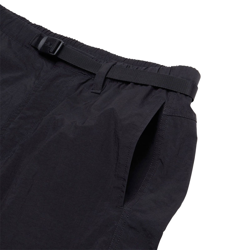 軽量感のあるナイロン素材を使用したシェルパンツ。はっ水加工を施し、多少の雨や汚れに対応します。両サイドにポケットを配置。ウエストはサイズ調節のしやすいウェビングベルト仕様です。シンプルなデザインで、アウトドアはもちろん、日常のさまざまなシーンで幅広く活用できるアイテムです |