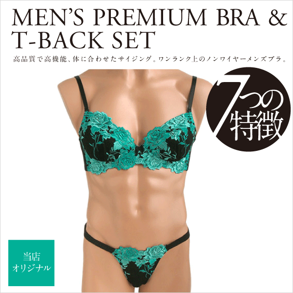 女装下着を必要とされる男性の為に特別に設計した当店オリジナルメンズブラとメンズTバックショーツのセット。