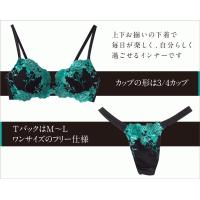 エレガントなピーコックグリーンの刺繍レースがグラマラスな印象のブラショーセット。