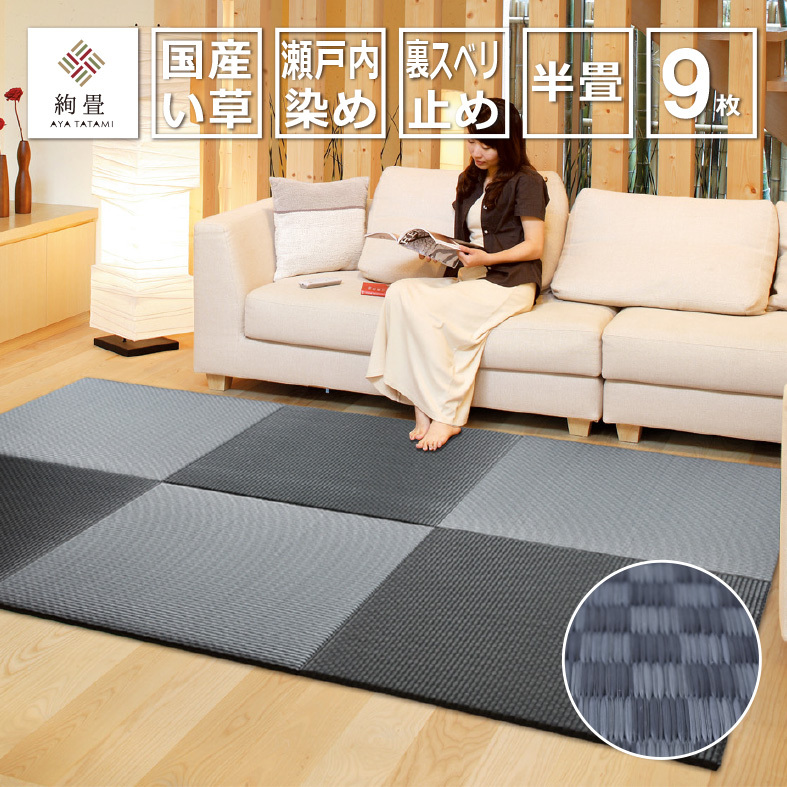 置き畳 ユニット畳 国産 い草 琉球畳 縁なし畳 半畳 日本製 子育て世代 82×82×1.6cm(9枚セット)サイズオーダー対応(離宮 ブラック)