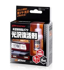 白化・色アセした樹脂表面に塗り込むだけで透明なガラス状の「ナノハード クリスタルコーティング」を形成し、ワックスやつや出し剤とは次元の違う光沢が6ヶ月以上も持続。