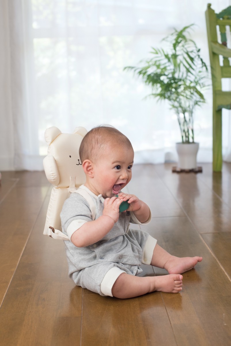 おすわりを始めた赤ちゃんをやさしくサポート、転倒による衝撃から頭を守ります。