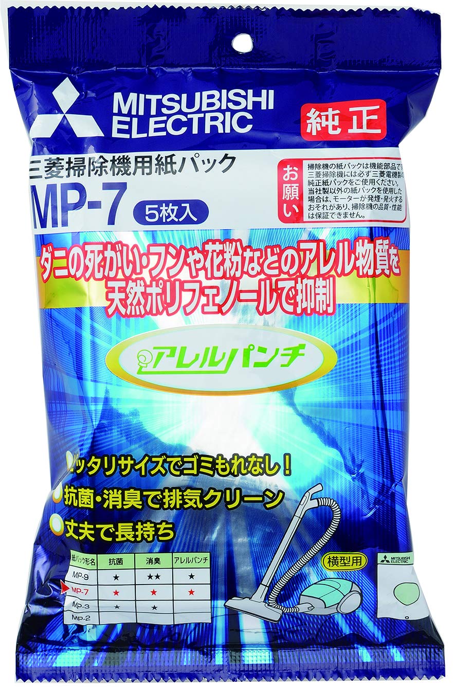 三菱電機 掃除機用抗アレルゲン抗菌消臭クリーン紙パック アレルパンチ 5枚入 MP-7