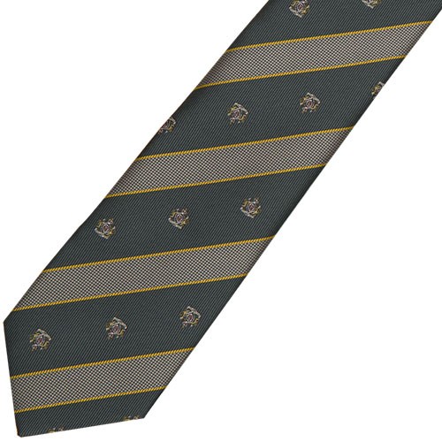 定番柄のクールな上品コーデに♪ クレスト小バスモスグリーンカーキネクタイ。