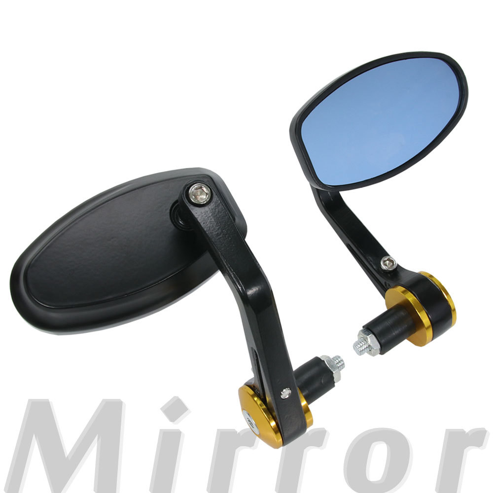 汎用 オーバルバーエンドミラー ゴールド マットブラック 左右セット ブルーレンズ バイク バイクミラー