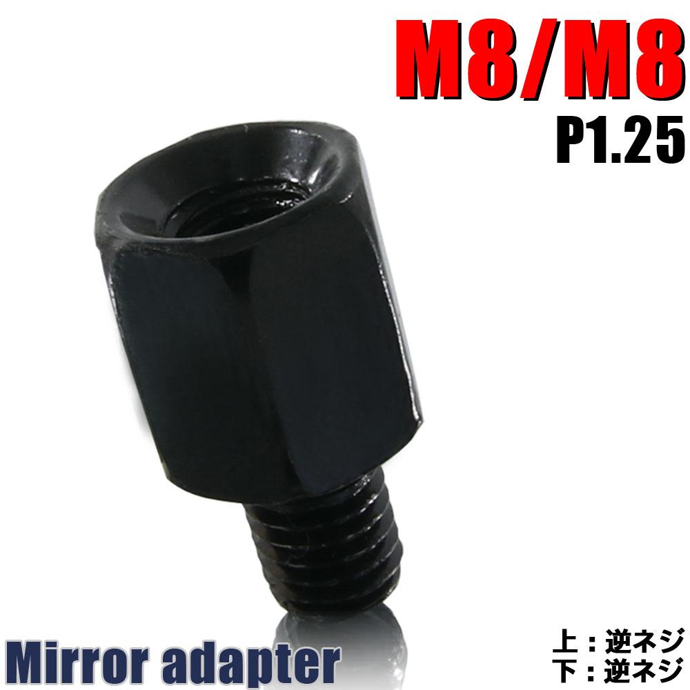 ミラー アダプター(ミラー側 逆 8mm 車体側 逆 8mm P1.25) ネジ バイク 汎用 1本 高さ変換 変換プラグ ブラック 簡単 交換 補修 B-241