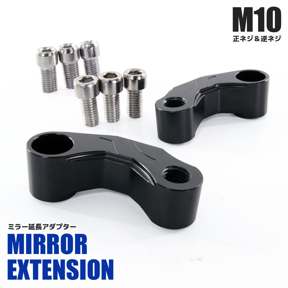 ミラー エクステンション 延長 アダプター 正ネジ 10mm用 M10 逆ネジ オフセット ホルダー ミラーライザー アルミ製 カスタム パーツ バイク ブラック
