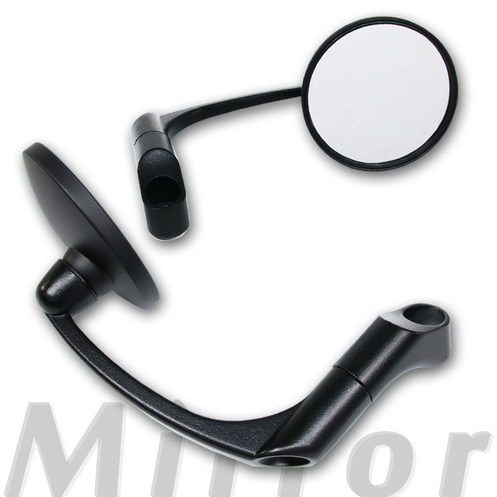 汎用 丸型バレンミラー ラウンドミラー マットブラック 取り付けネジ10mm 8mm 左右セット 逆ネジ対応