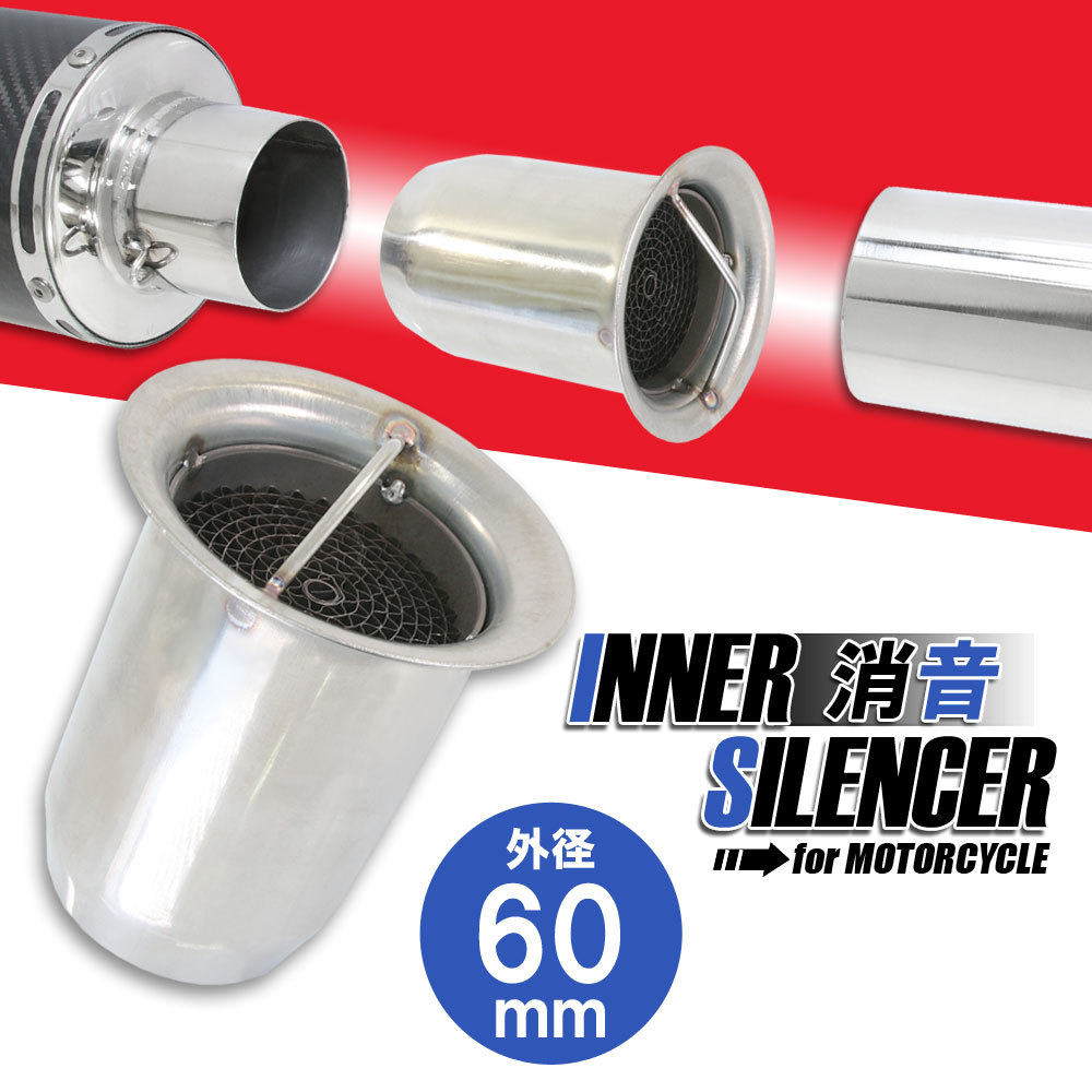 インナーサイレンサー 60mm 消音 触媒型 ステンレス バッフル 差込用 汎用 バイク Cタイプ オートバイ マフラー カスタム パーツ 交換 補修