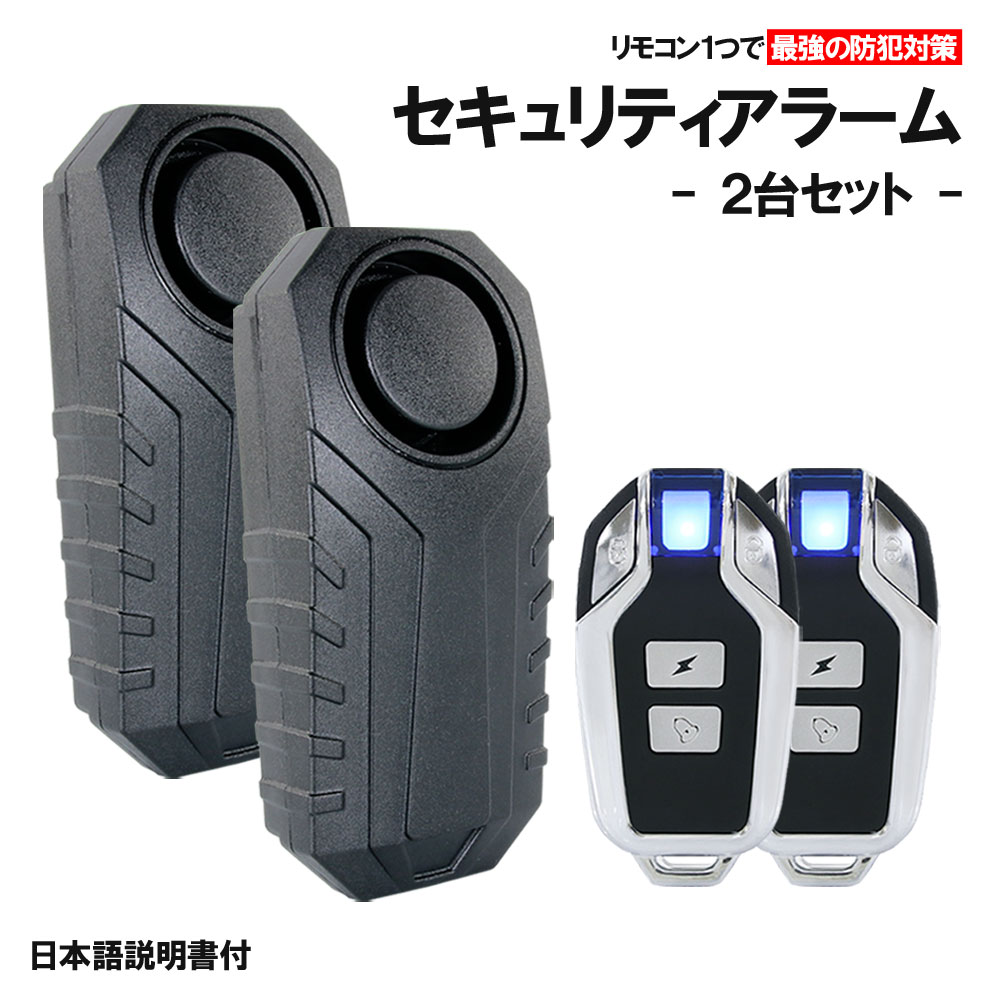 最新版 日本語説明書付 セキュリティアラーム 2台セット 盗難防止 防犯ブザー ワイヤレス ペアリング 配線不要 大音量 音量調節 バイク