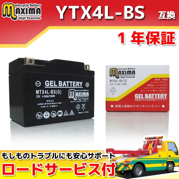 充電済み すぐ使える ジェルバッテリーYTX4L-BS GTH4L-BS FTH4L-BS DTX4L-BS互換 バイクバッテリー MTX4L-BS(G) 1年保証 ジェルタイプ スーパーカブ50 Gダッシュ