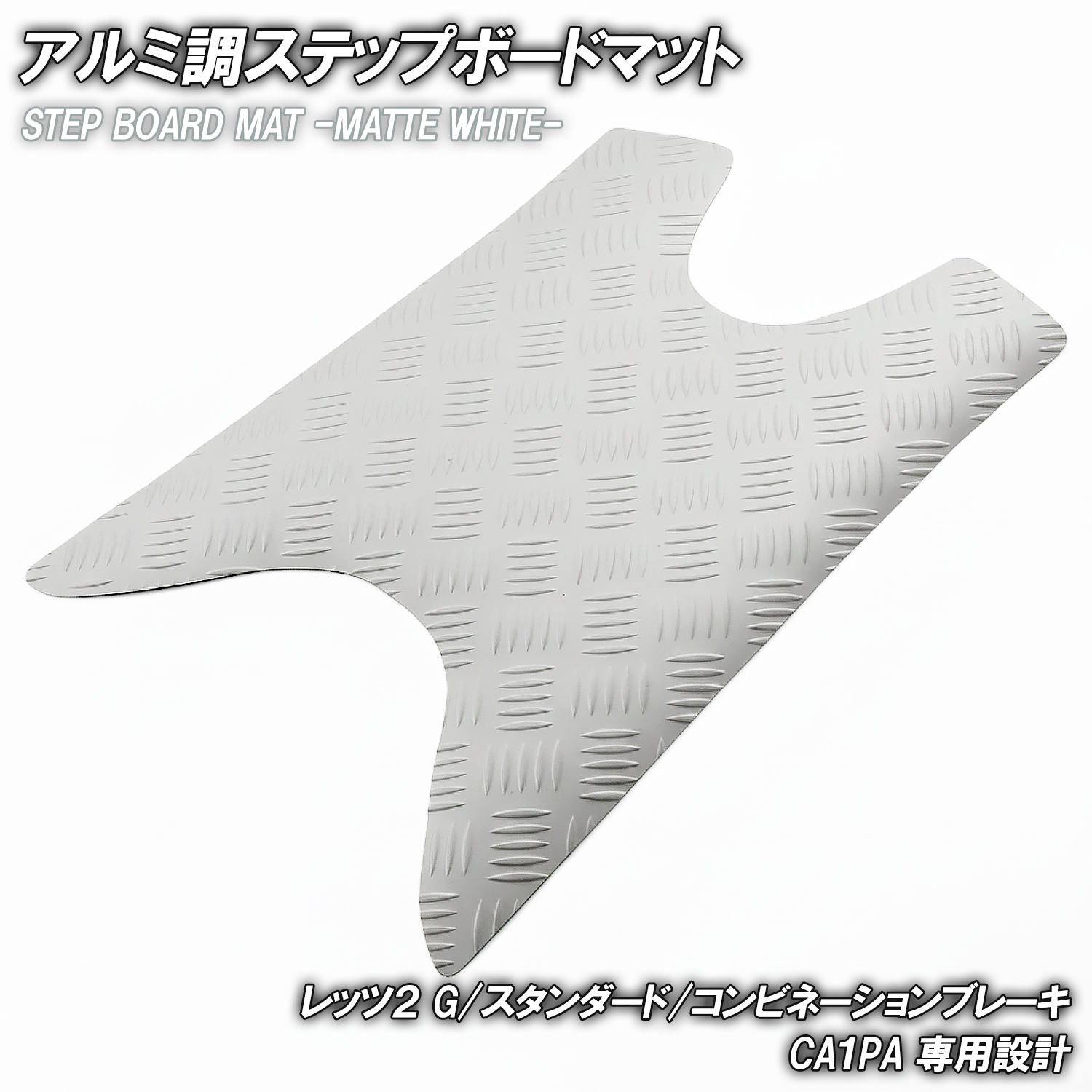 アルミ調 ステップマット スズキ レッツ2 G/スタンダード/コンビネーションブレーキ CA1PA マットホワイト 縞鋼板 バイク ゴムマット ステップボード カスタム