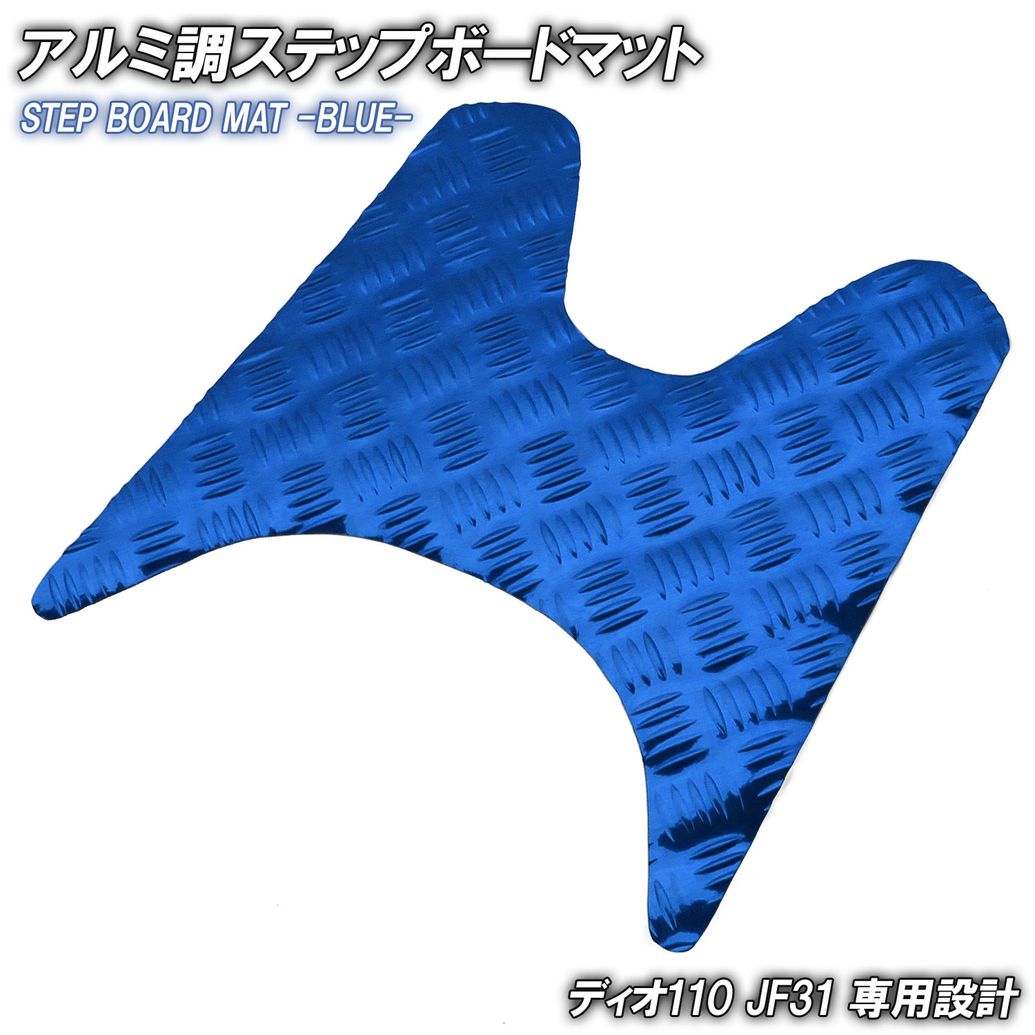 アルミ調 ステップマット ホンダ ディオ110 JF31 ブルー メッキ バイク ゴムマット ステップボード 交換 カスタム パーツ 補修 DIO110 部品 防水 ラバー製
