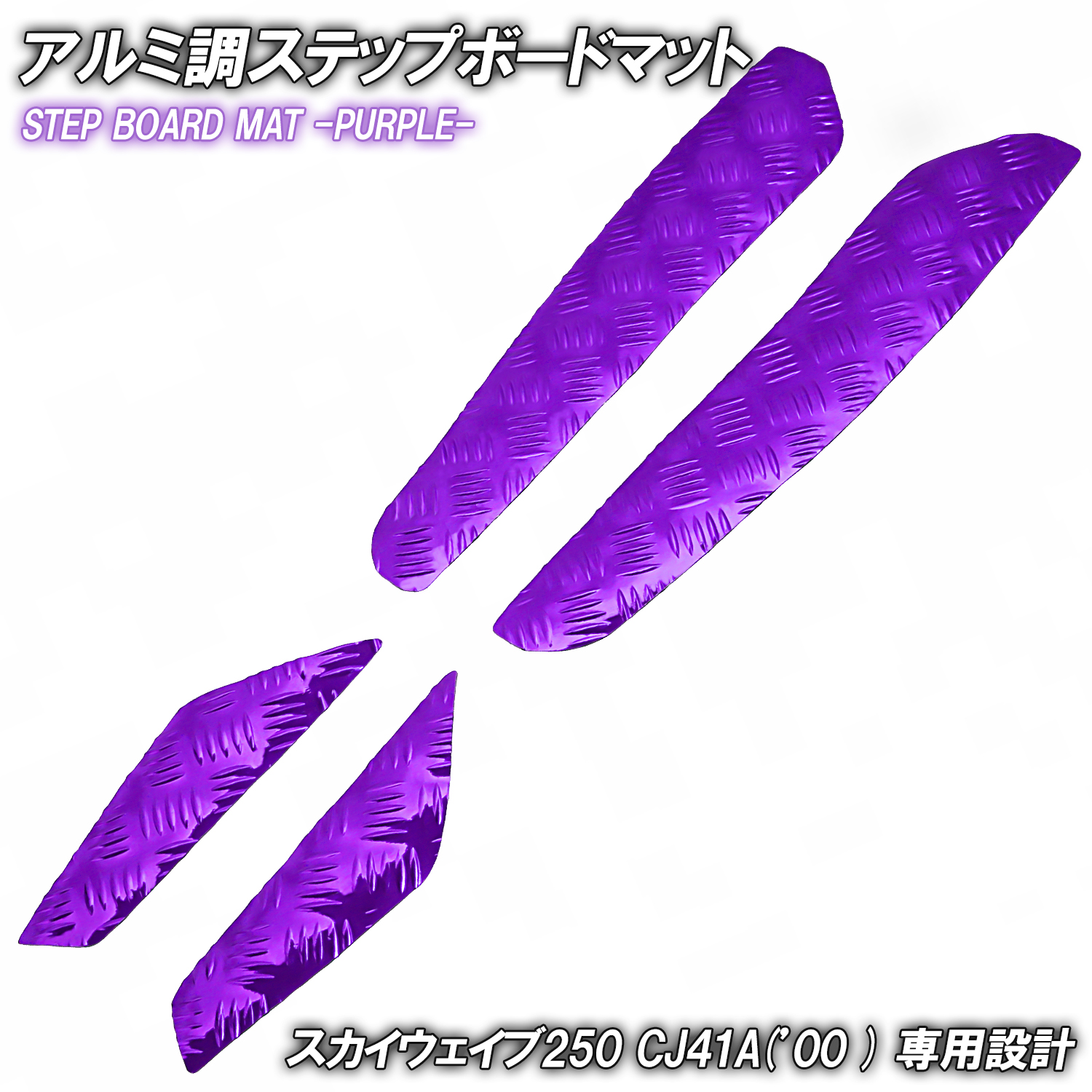 アルミ調 ステップマット スズキ スカイウェイブ250 CJ41A 2000年 パープル メッキ バイク ゴムマット ステップボード カスタム 交換 パーツ 部品 補修 防水