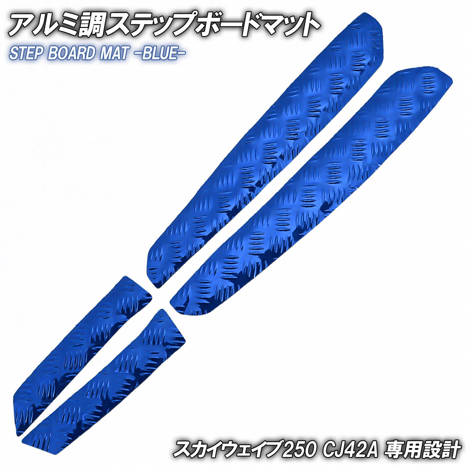 アルミ調 ステップマット スズキ スカイウェイブ250 タイプ2/タイプS CJ42A ブルー メッキ バイク ゴムマット ステップボード 交換 カスタム パーツ 部品 補修