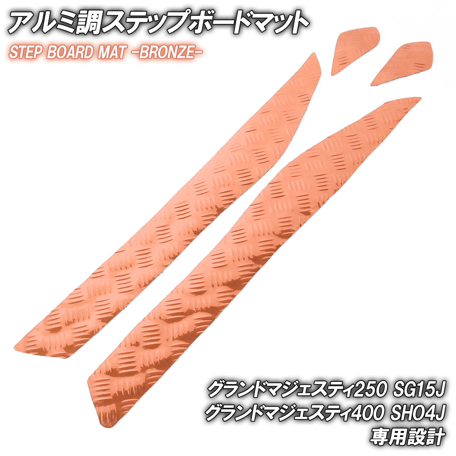 アルミ調 ステップマット ヤマハ グランドマジェスティ250/400 SG15J SH04J ブロンズ メッキ バイク ゴムマット ステップボード 交換 カスタム パーツ 補修