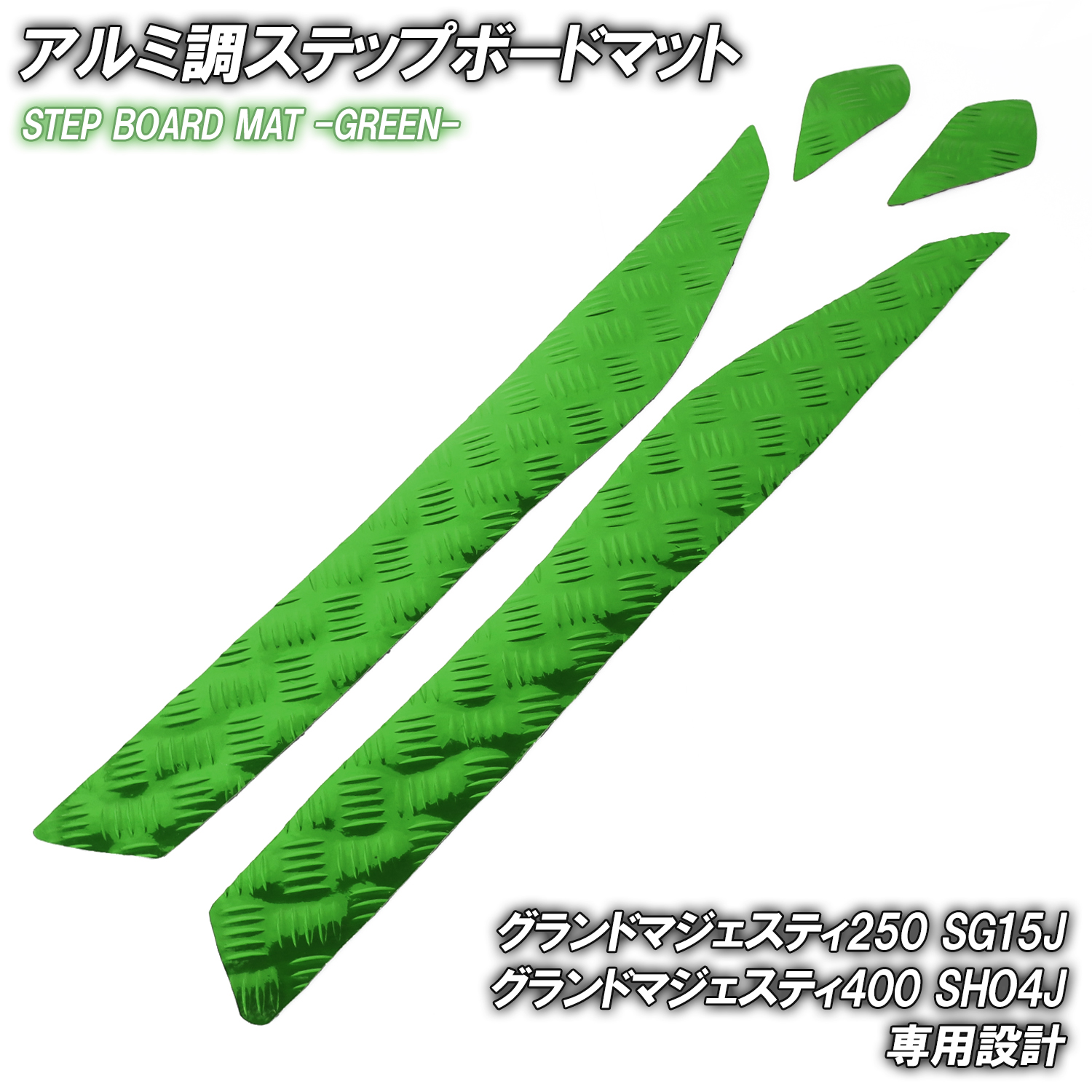 アルミ調 ステップマット ヤマハ グランドマジェスティ250/400 SG15J SH04J グリーン メッキ バイク ゴムマット ステップボード 交換 カスタム パーツ 補修